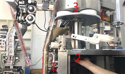 量杯計(jì)量裝置相對(duì)電子秤稱重下料的精度差一點(diǎn),但是實(shí)惠。量杯計(jì)量裝置下料與封口不一致,需要調(diào)整量杯料位與下料封口的時(shí)間,如果下料快,需要把1的手柄打下來,然后把2的凸輪托起來,如果下料快,把轉(zhuǎn)盤標(biāo)示3往逆時(shí)針方向轉(zhuǎn)一點(diǎn),如果下料慢,則把轉(zhuǎn)盤往順時(shí)針方向轉(zhuǎn)一點(diǎn)。